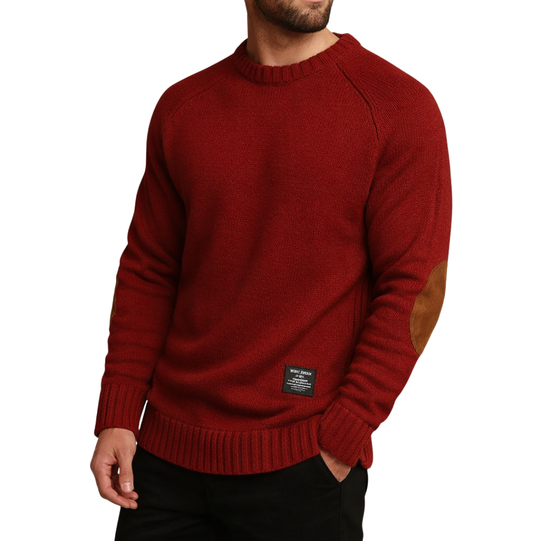 Men’s Crew Neck Knit Jumper with Elbow Patch Detail