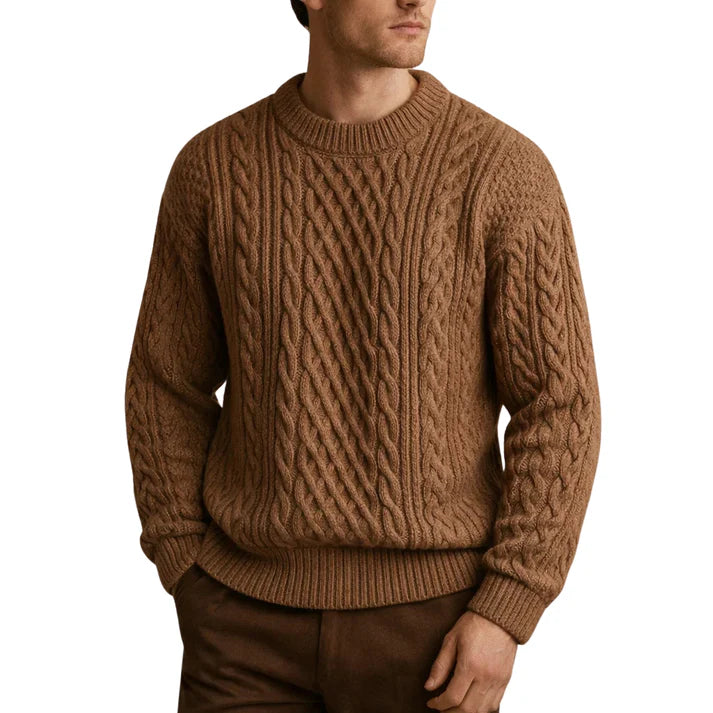 Men’s Cable Knit Jumper with Crew Neck and Long Sleeves