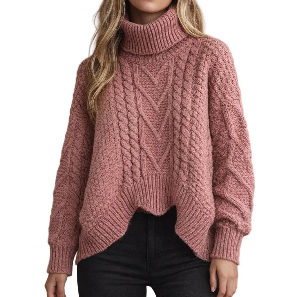 Women’s Cable Knit Jumper with Roll Neck and Long Sleeves