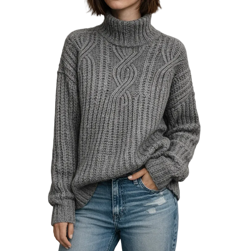 Women’s Chunky Cable Knit Turtleneck Sweater Grey