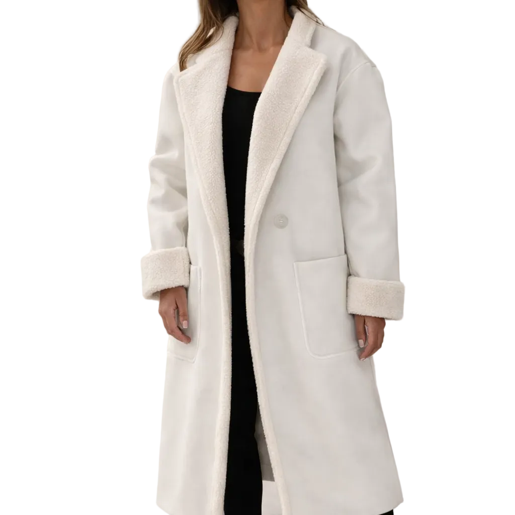 Women’s Longline Coat with Sherpa Lining and Patch Pockets