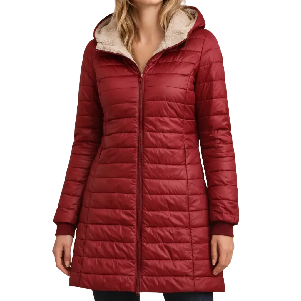 Women’s Longline Quilted Hooded Winter Coat with Fleece Lining