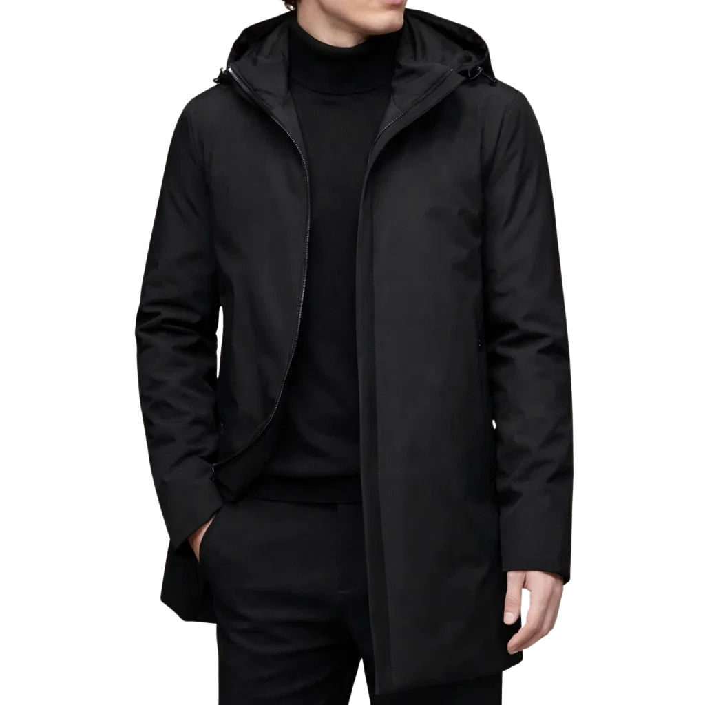 Men’s Hooded Longline Jacket with Zip Closure and Lightweight Padding