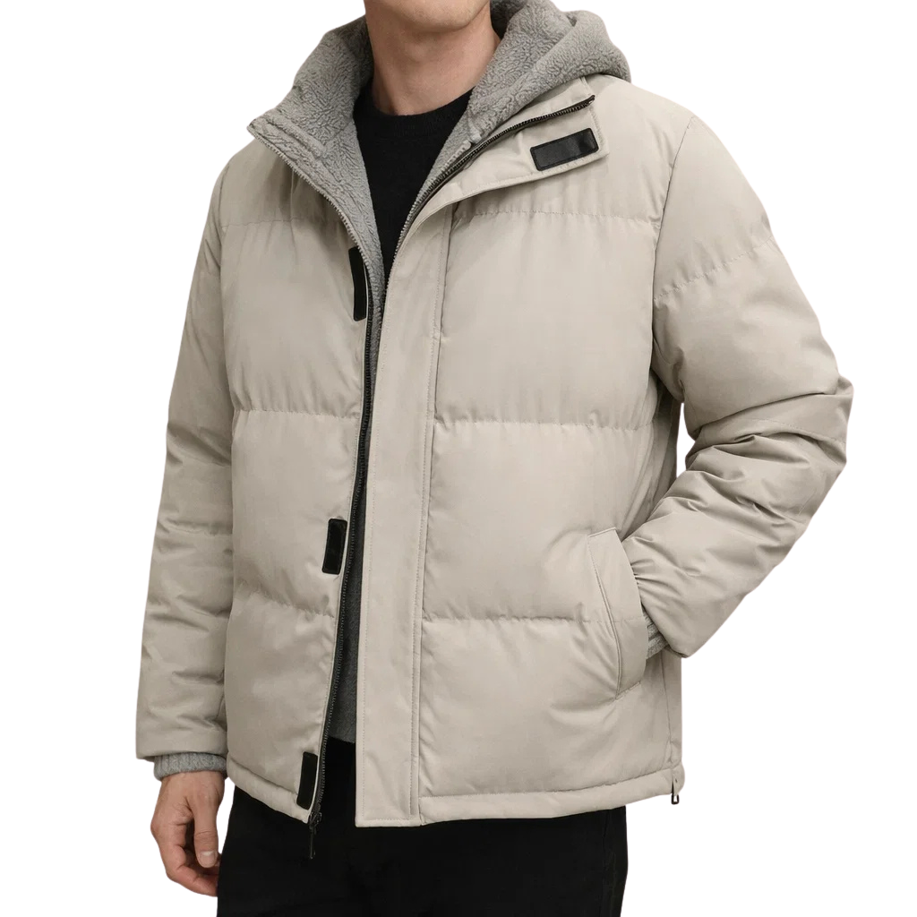 Men’s Hooded Puffer Jacket with Fleece Lining and Zip Front