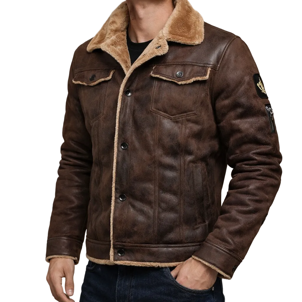 Men’s Faux Suede Zip-Front Jacket with Shearling Lining