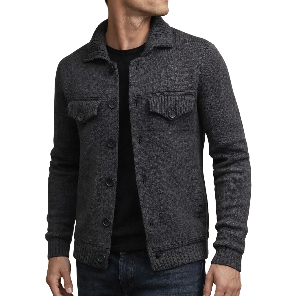 Men’s Button Through Knit Jacket with Chest Pockets