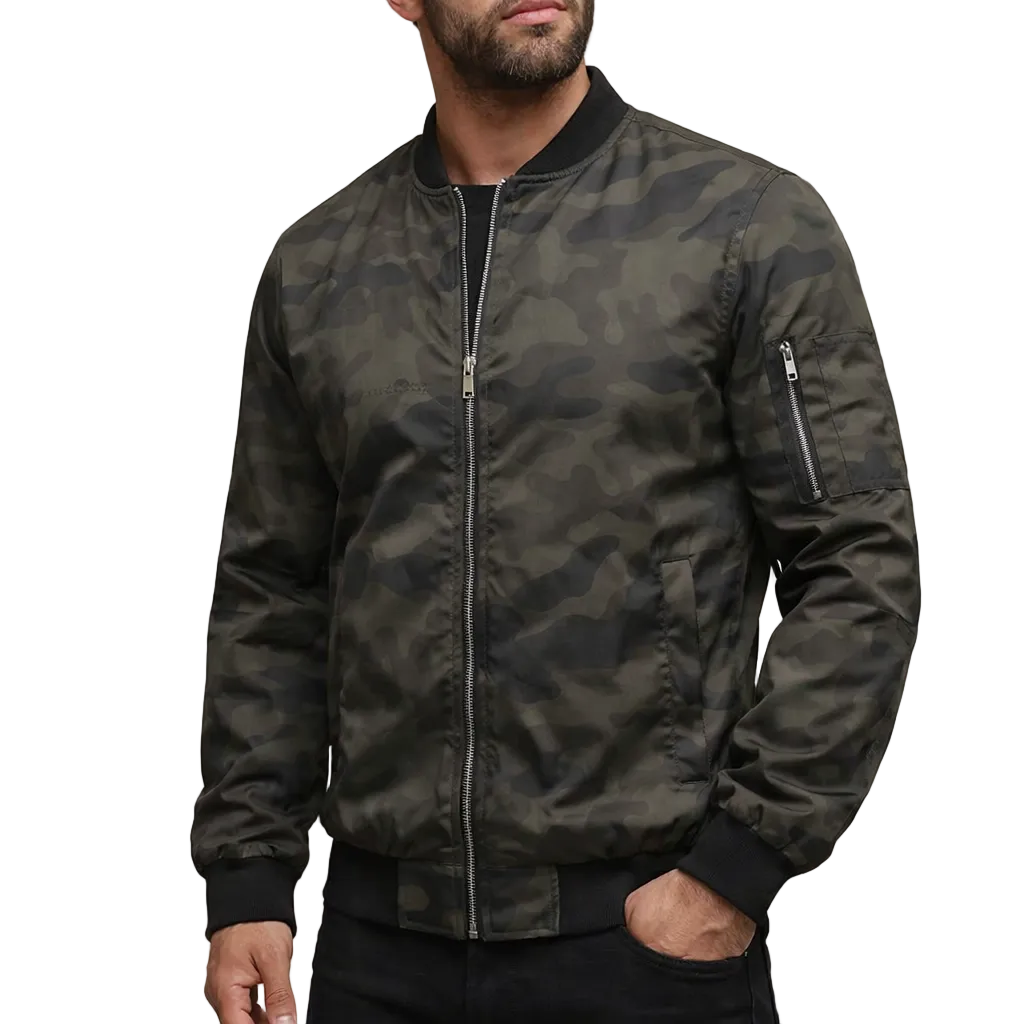 Men’s Camouflage Bomber Jacket with Zip Closure