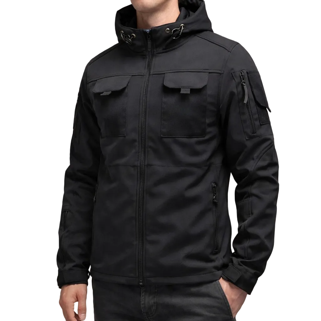 Men’s Hooded Utility Jacket with Multiple Zip Pockets