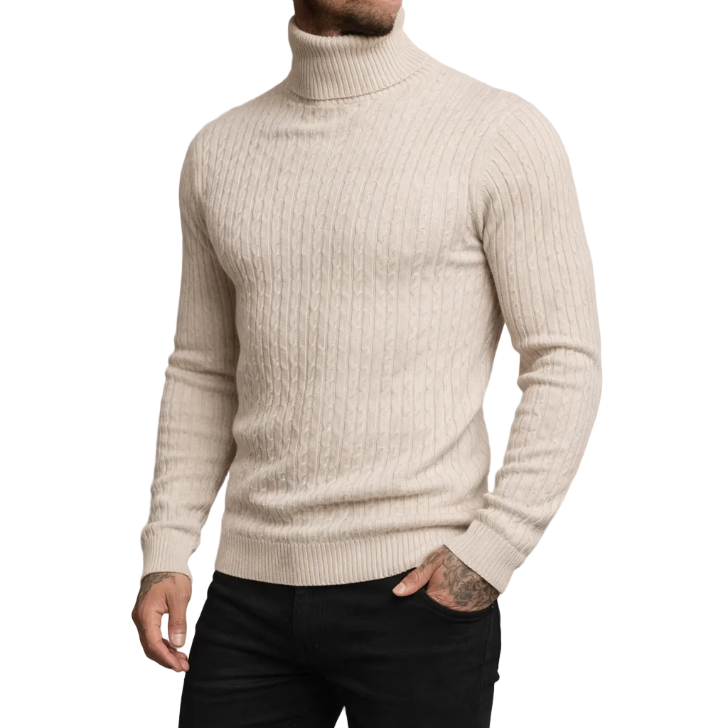Men’s Slim Fit Cable Knit Turtleneck Jumper