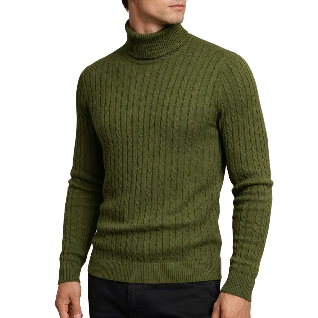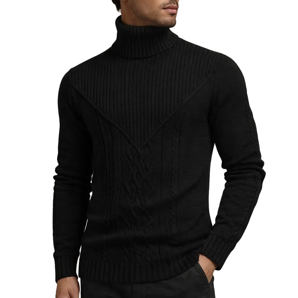 Men’s Ribbed Cable Knit Turtleneck Sweater