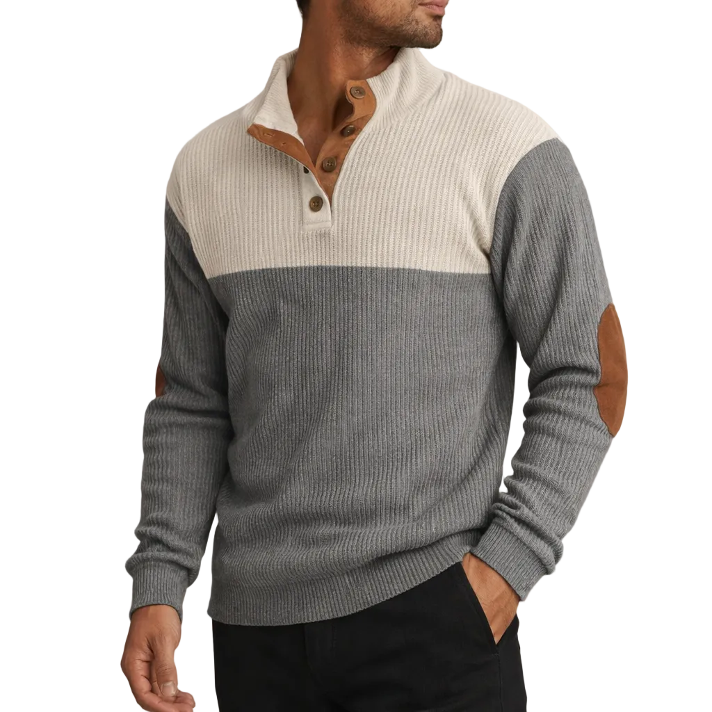 Men’s Ribbed Knit Henley Jumper with Contrast Panel Detailing