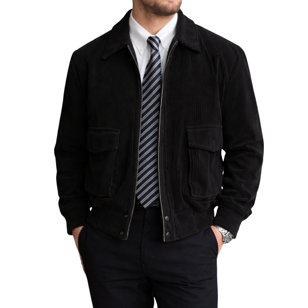 Men’s Corduroy Zip-Front Jacket with Pocket Details Black