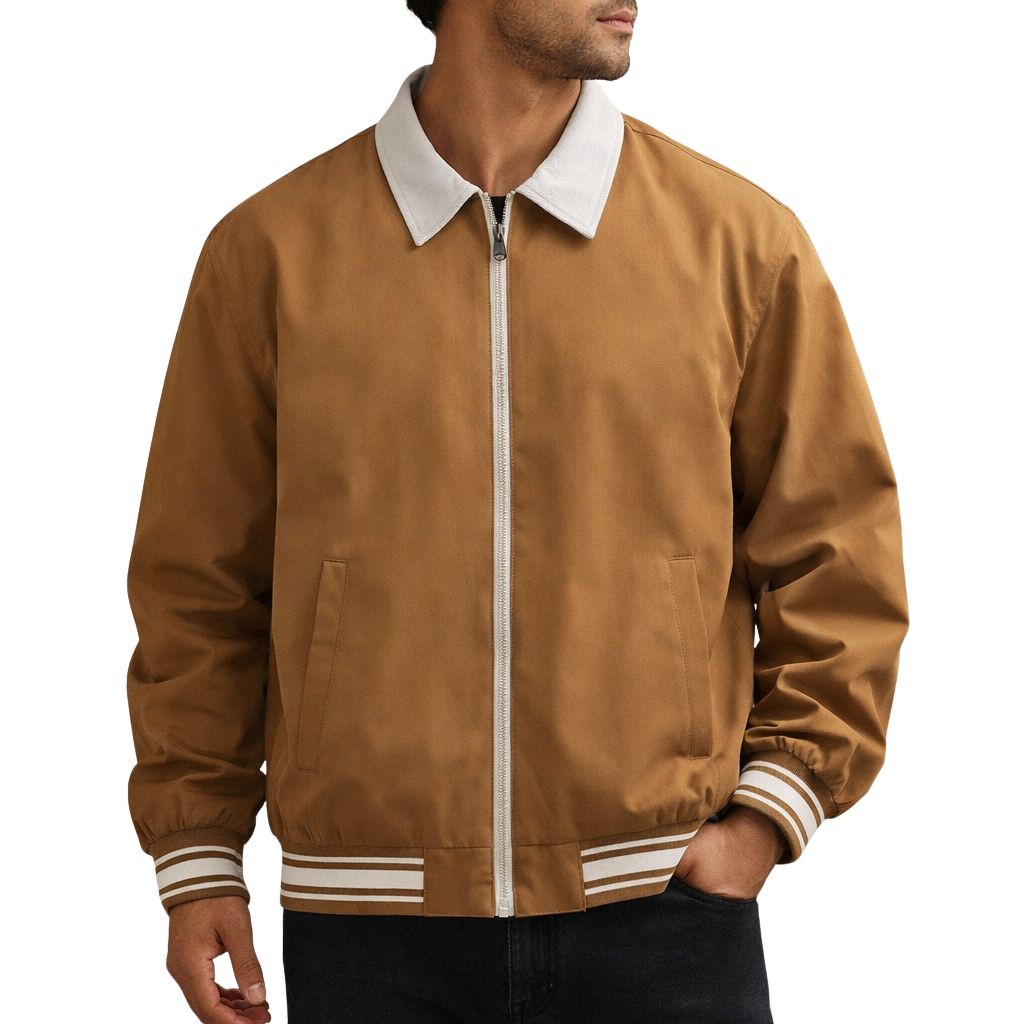 Men’s Zip-Front Bomber Jacket with Contrast Collar