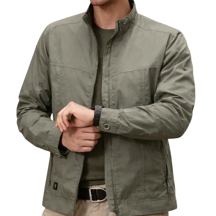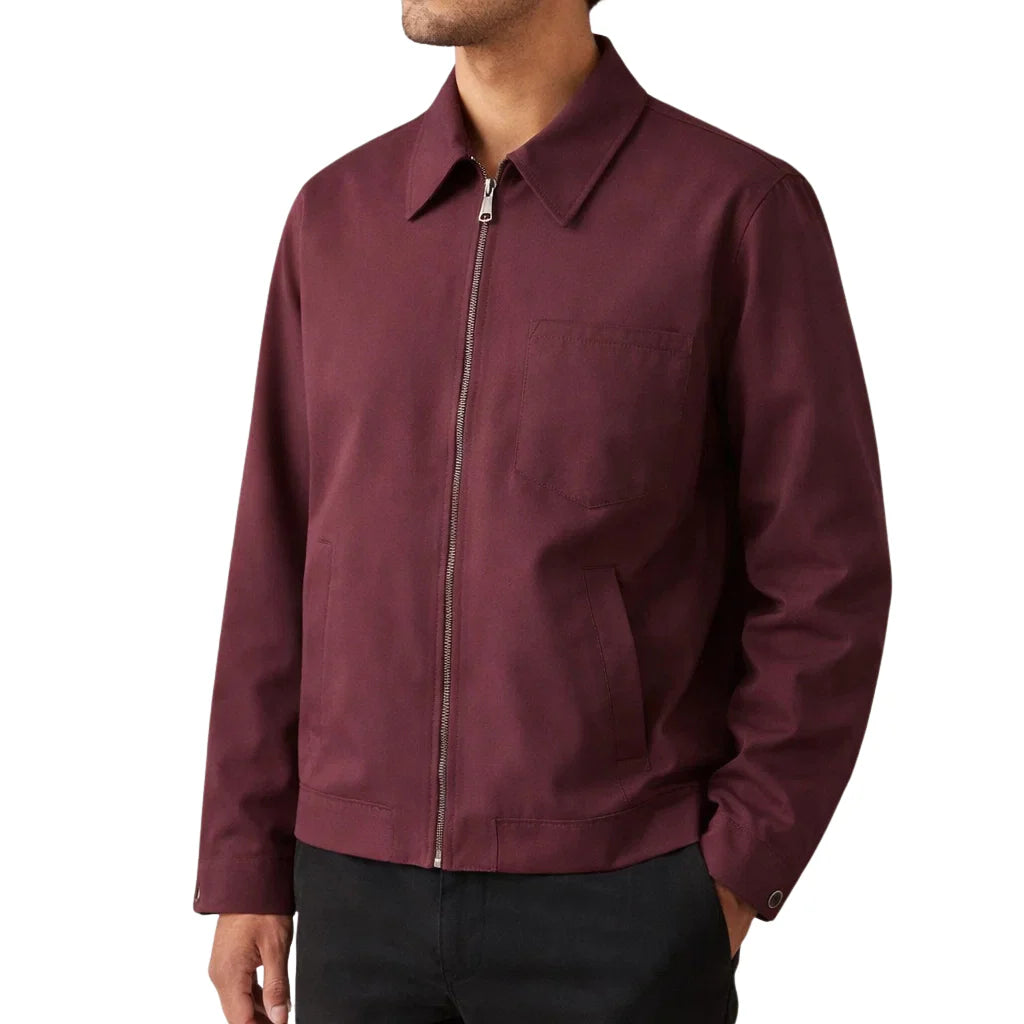 Men’s Zip Front Jacket with Classic Collar and Chest Pocket