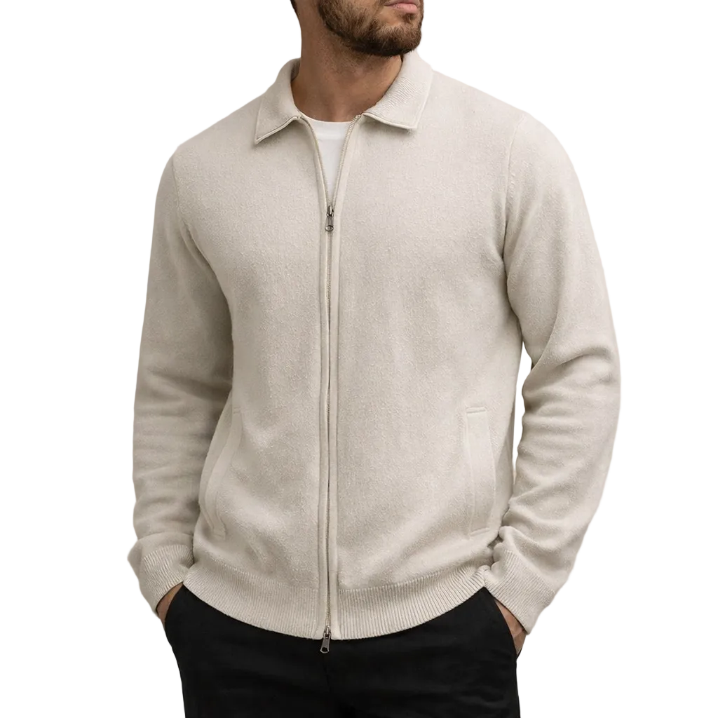 Men’s Zip-Front Cardigan with Geometric Pattern