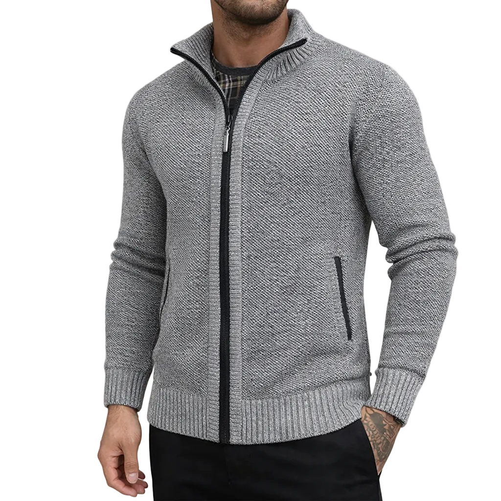 Men’s Textured Zip-Up Knit Cardigan with High Collar