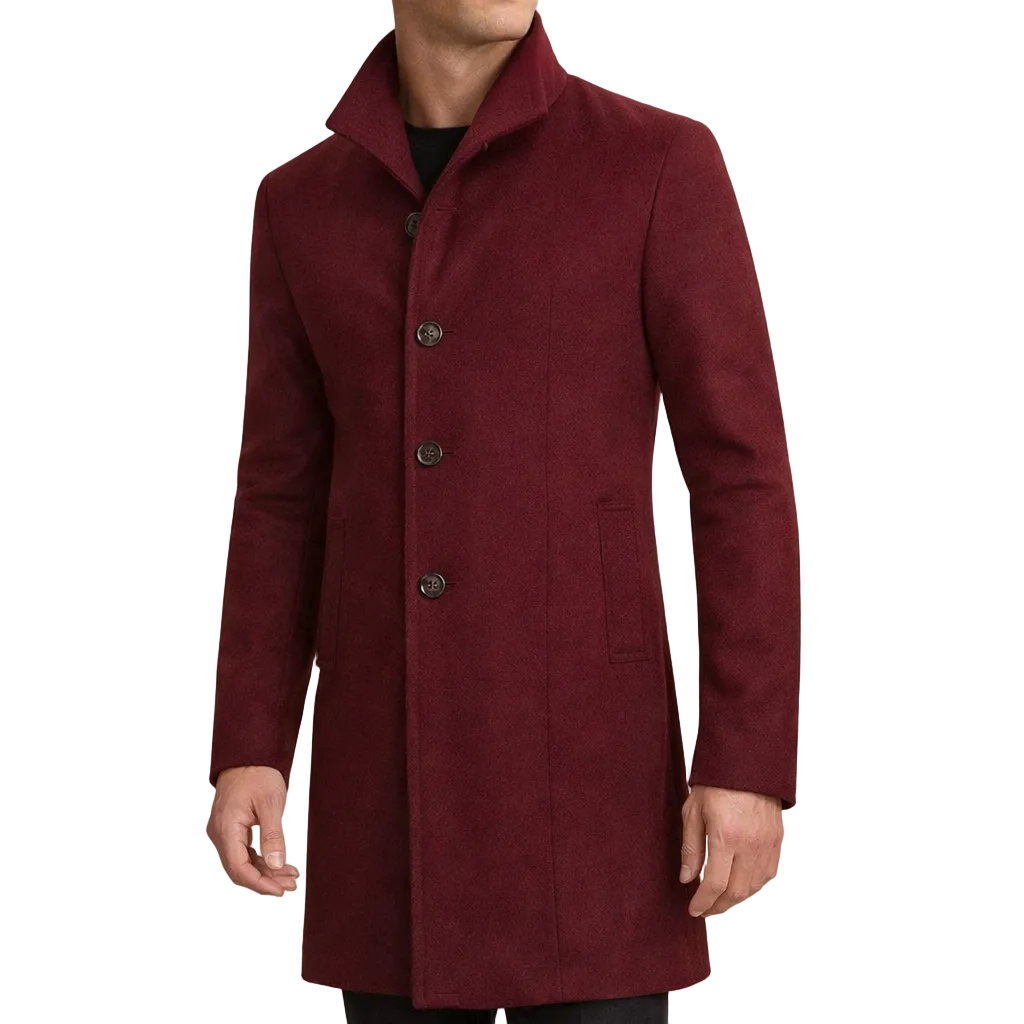 Men’s Tailored Wool Blend Coat with Stand Collar and Button Front