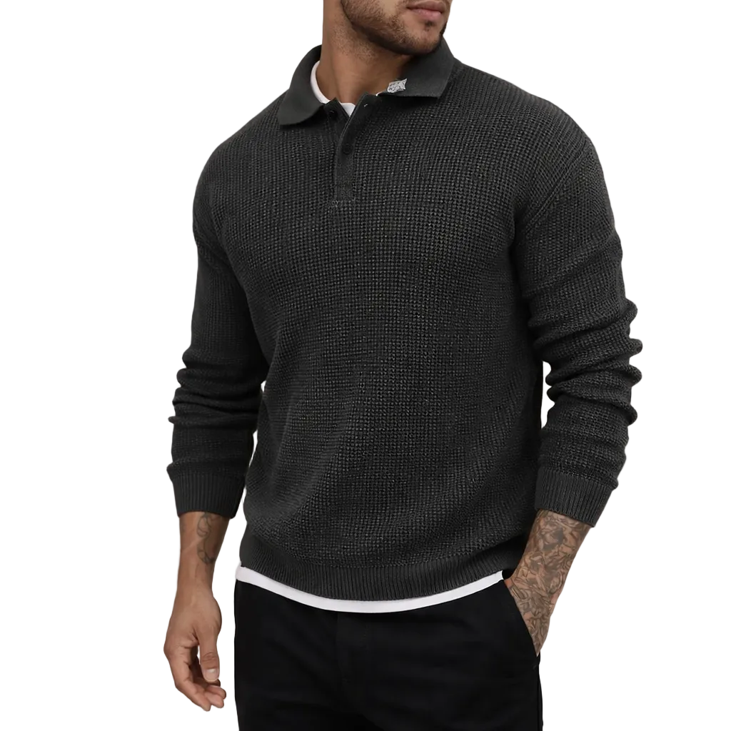 Men’s Textured Knit Polo Jumper with Long Sleeves