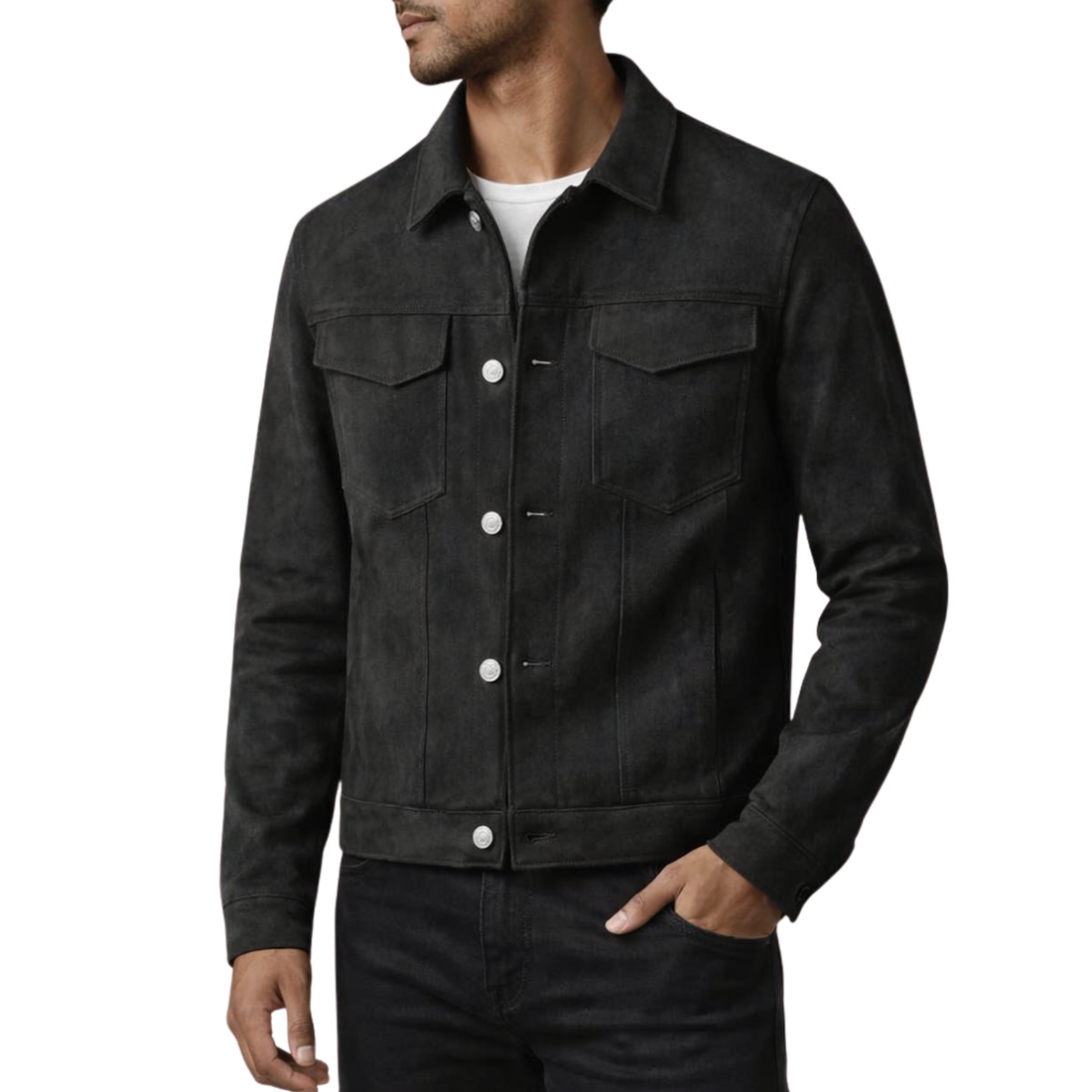 Men’s Suede-Effect Trucker Jacket with Button Front
