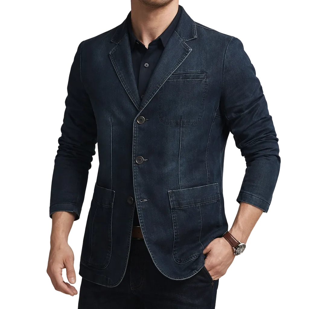 Men’s Tailored Denim Blazer Jacket with Notch Lapel
