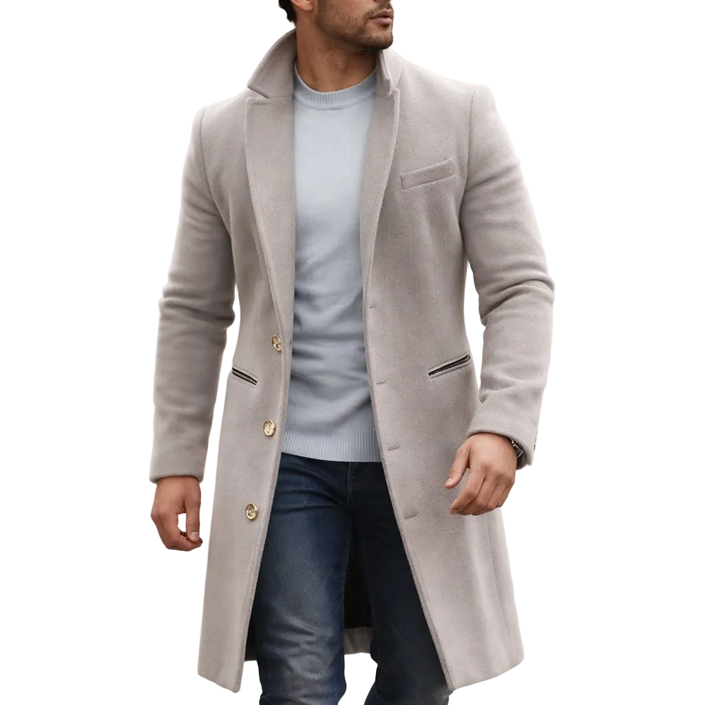 Men’s Tailored Single-Breasted Wool Overcoat with Notch Lapel