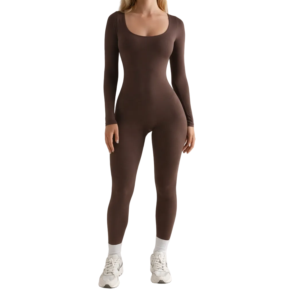 Women’s Fitted Long Sleeve Scoop Neck Jumpsuit