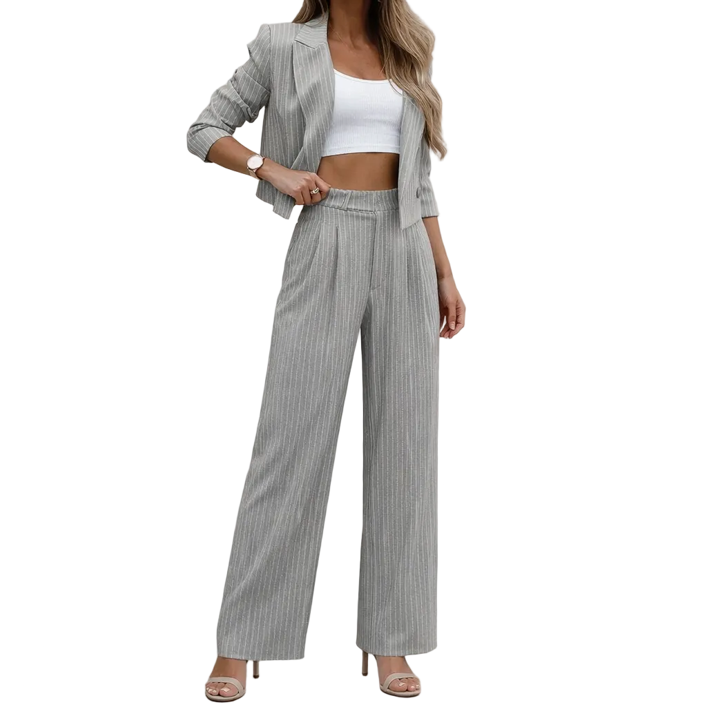 Women’s Pinstripe Cropped Blazer and Wide-Leg Trousers Set