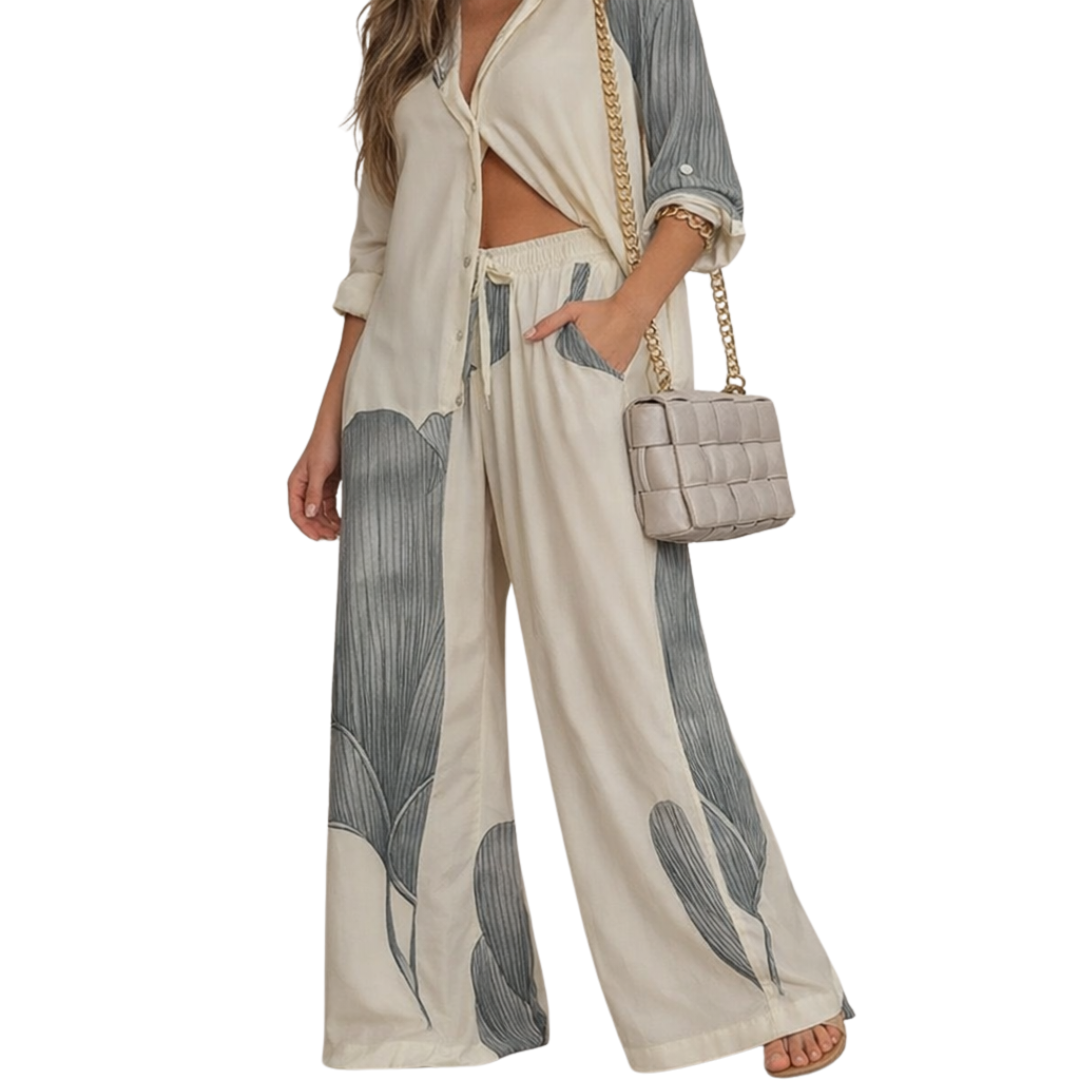 Women’s Printed Shirt & Wide-Leg Trousers Co-Ord Set