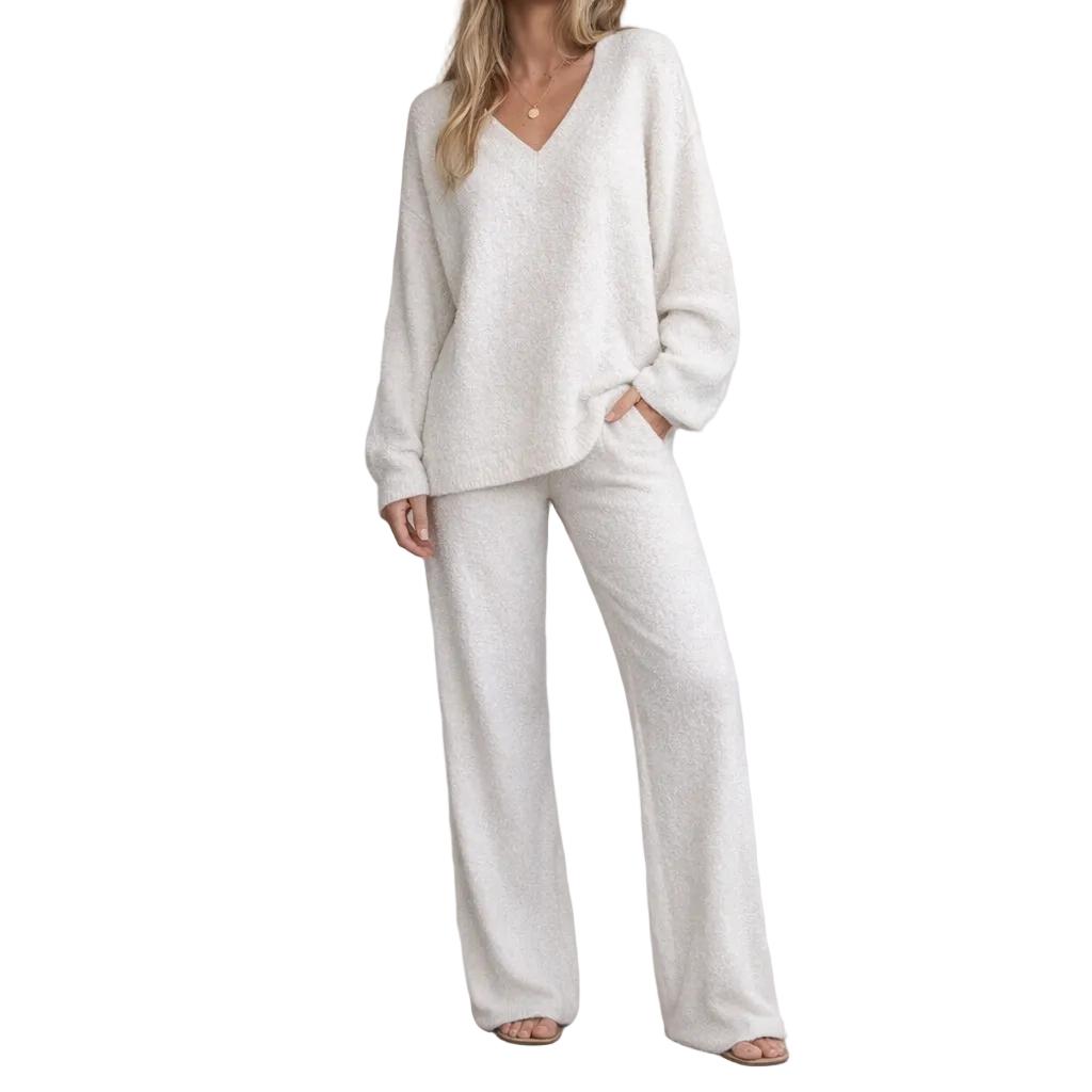 Women’s Two-Piece Knit Lounge Set with V-Neck Top