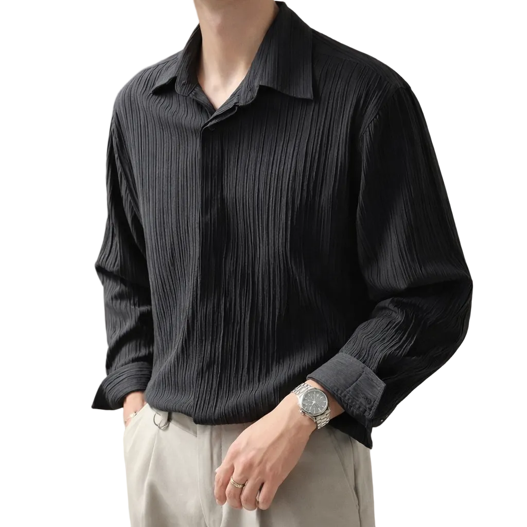 Men’s Long Sleeve Textured Shirt with Spread Collar