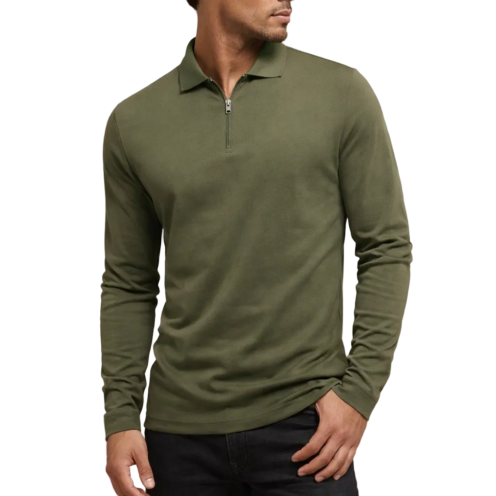 Men’s Long Sleeve Polo Shirt with Quarter Zip