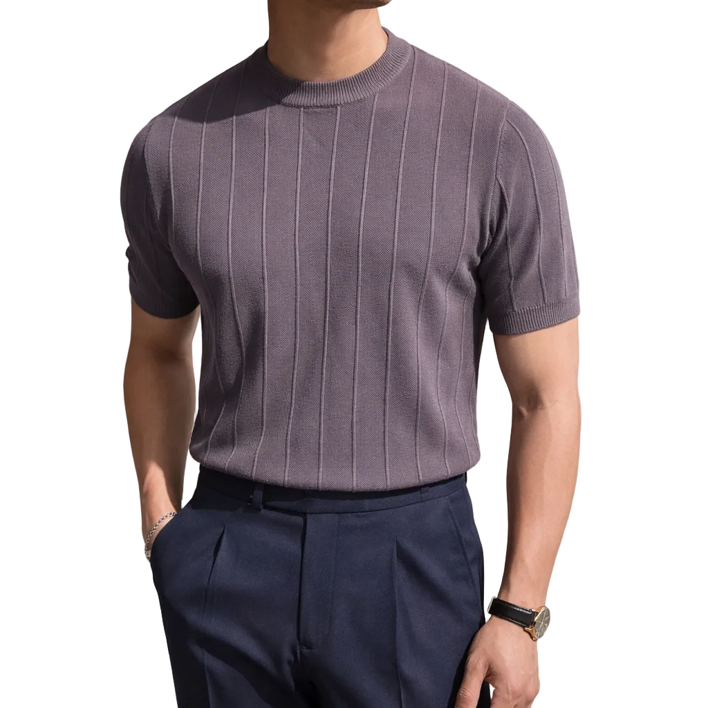 Men’s Ribbed Knit T-Shirt with Crew Neck