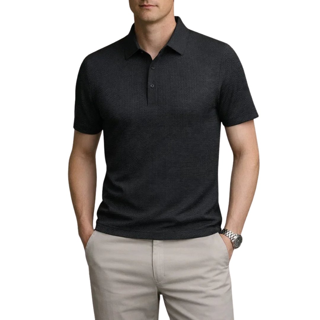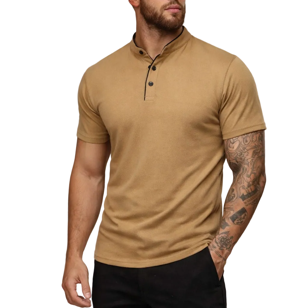 Men’s Short Sleeve Polo with Buttoned Collar Detail