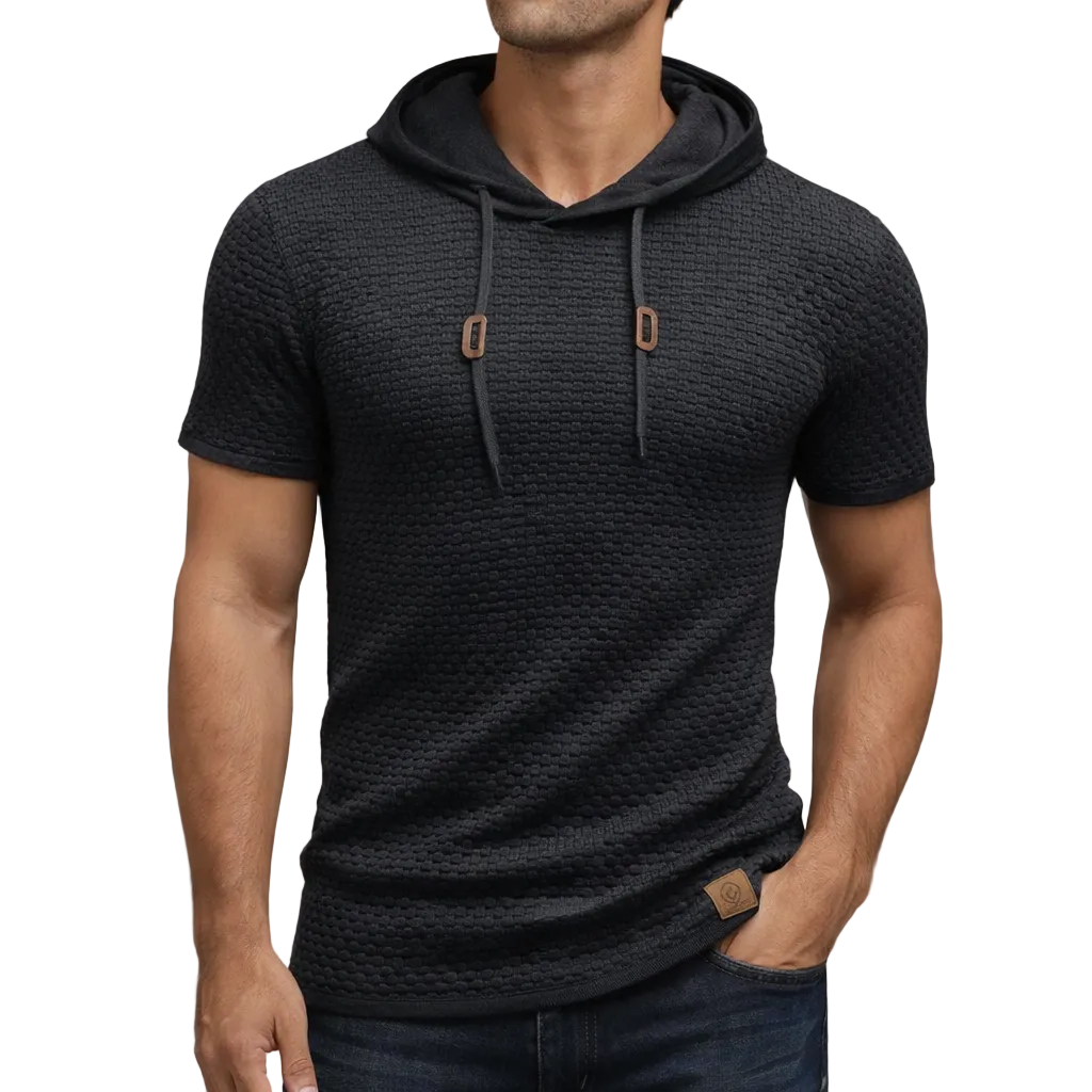 Men’s Textured Short Sleeve Hoodie with Drawstring