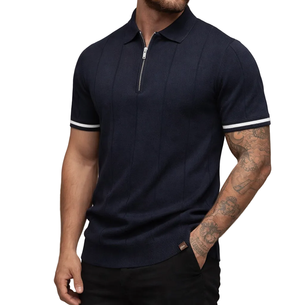 Men’s Short Sleeve Knit Polo Shirt with Textured Stripe Design