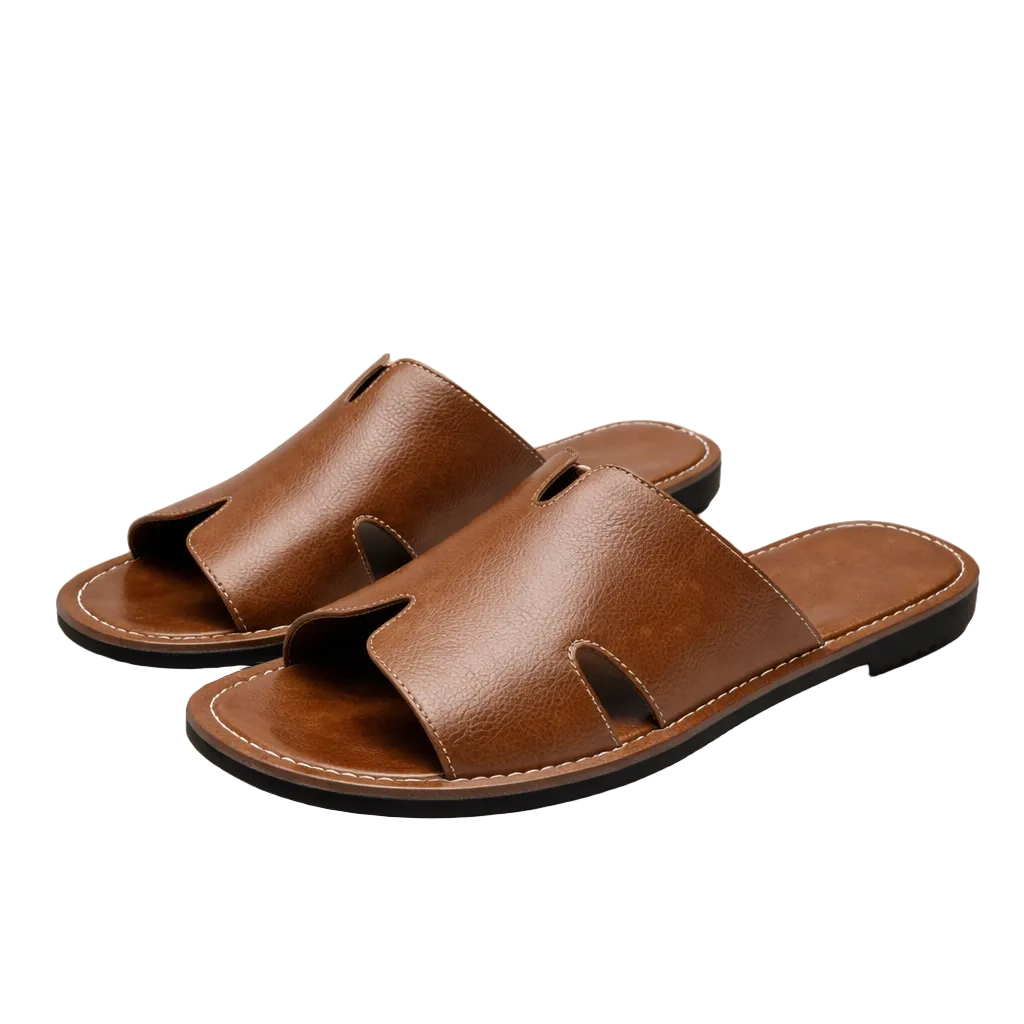 Men’s Faux Leather Slide Sandals with Cut Out Detail