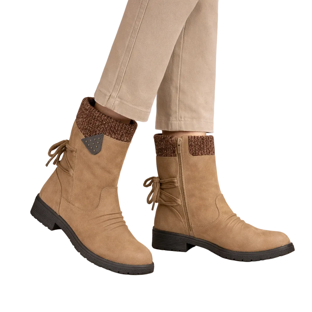 Women’s Mid-Calf Winter Boots with Side Zip and Knit Cuff