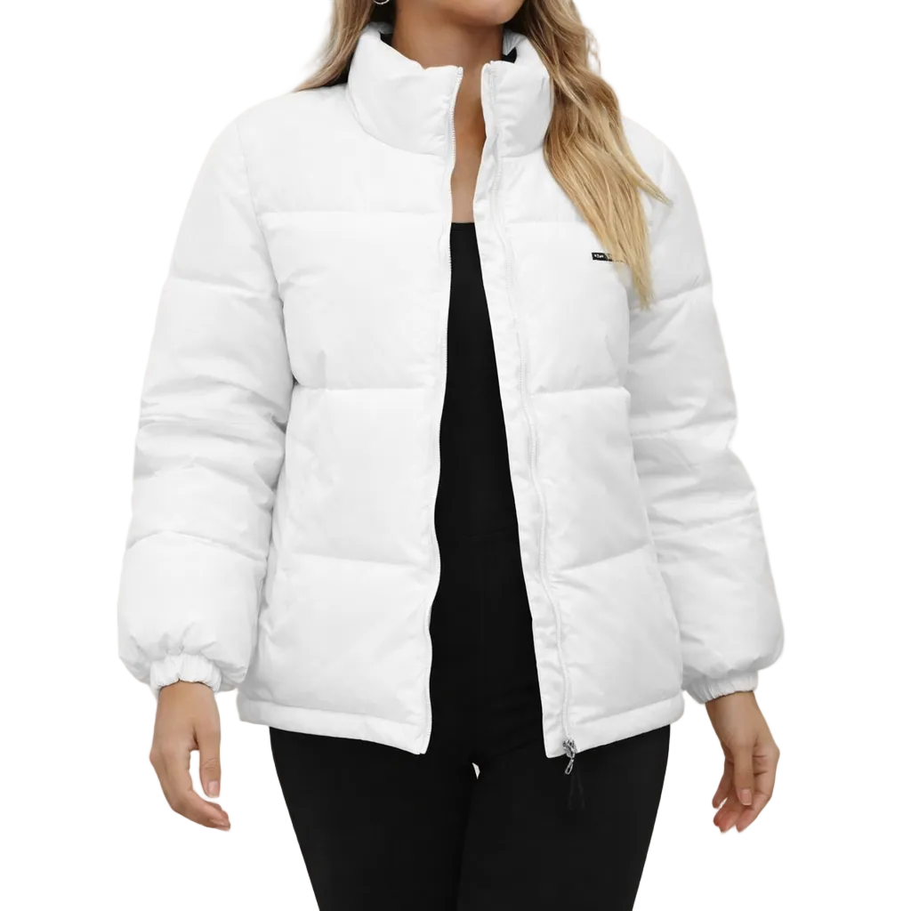 Women’s Quilted Puffer Jacket with Stand Collar