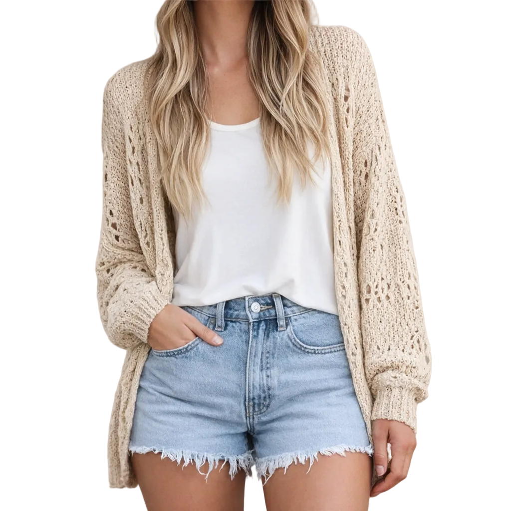Women’s Oversized Chunky Knit Jumper with Patch Pocket Cream