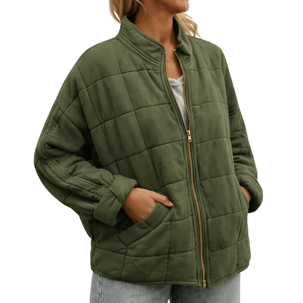 Women’s Oversized Quilted Zip-Front Jacket with Padded Design