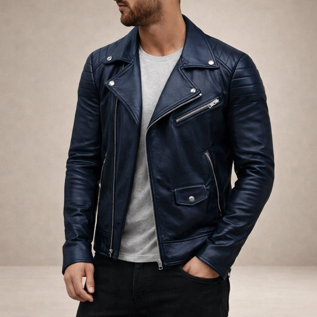 Men’s Biker Leather Jacket with Asymmetric Zip
