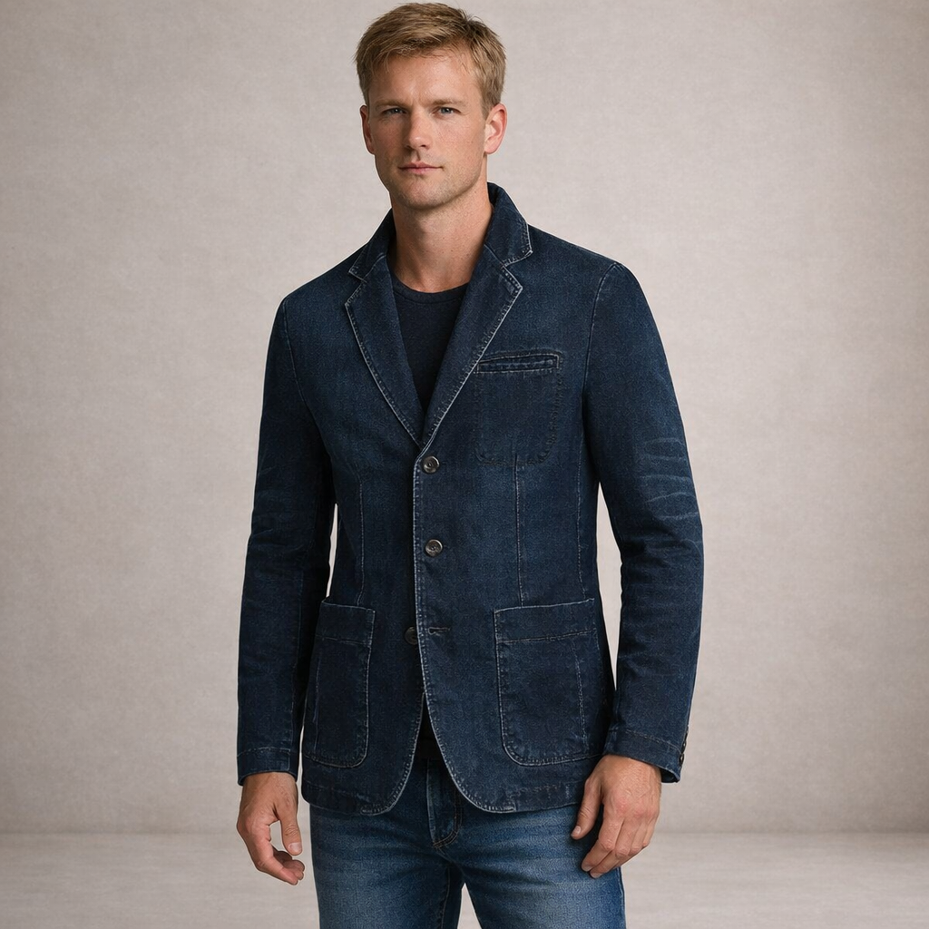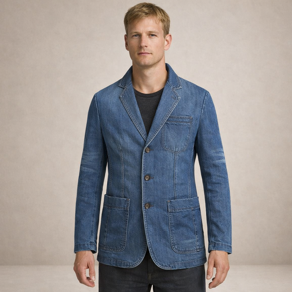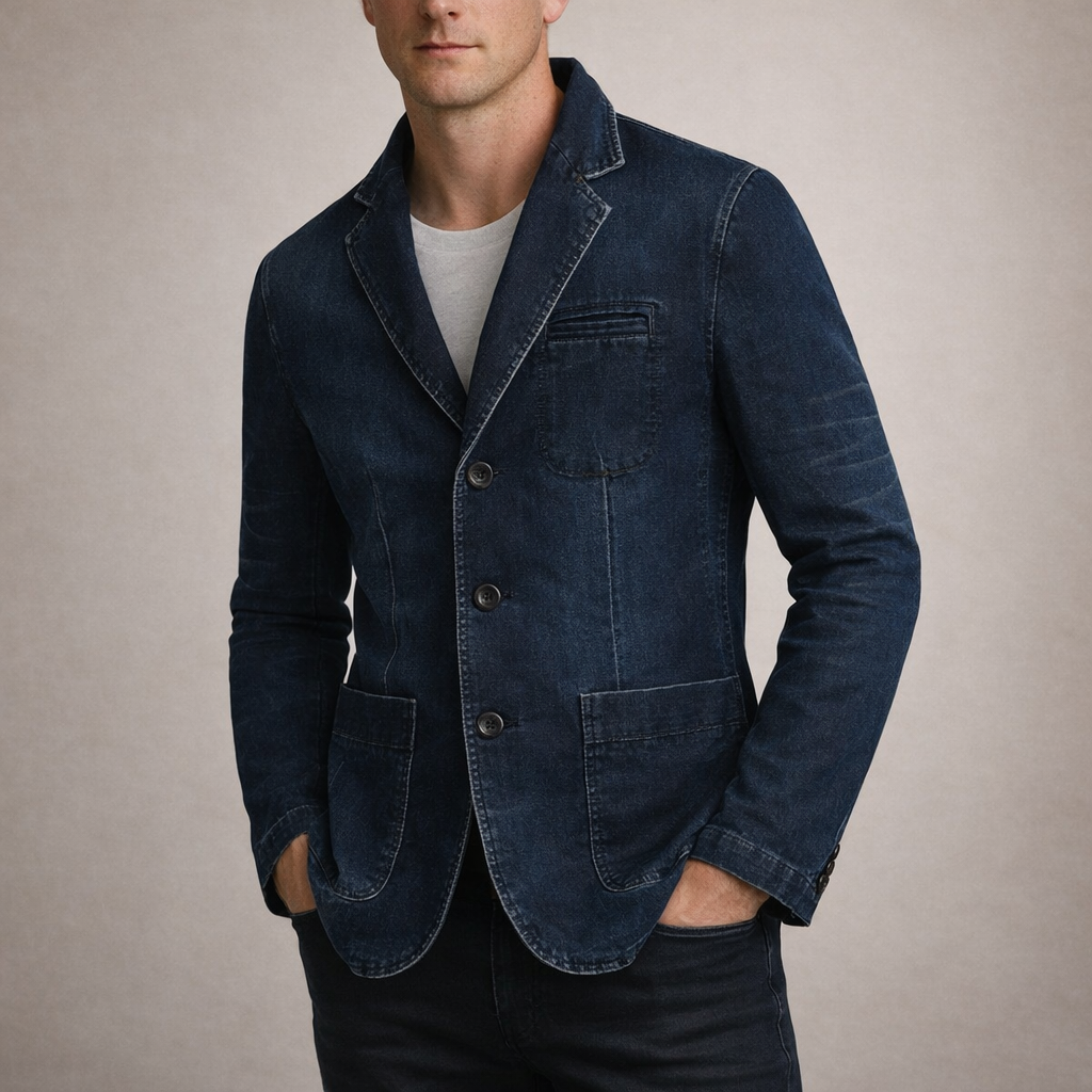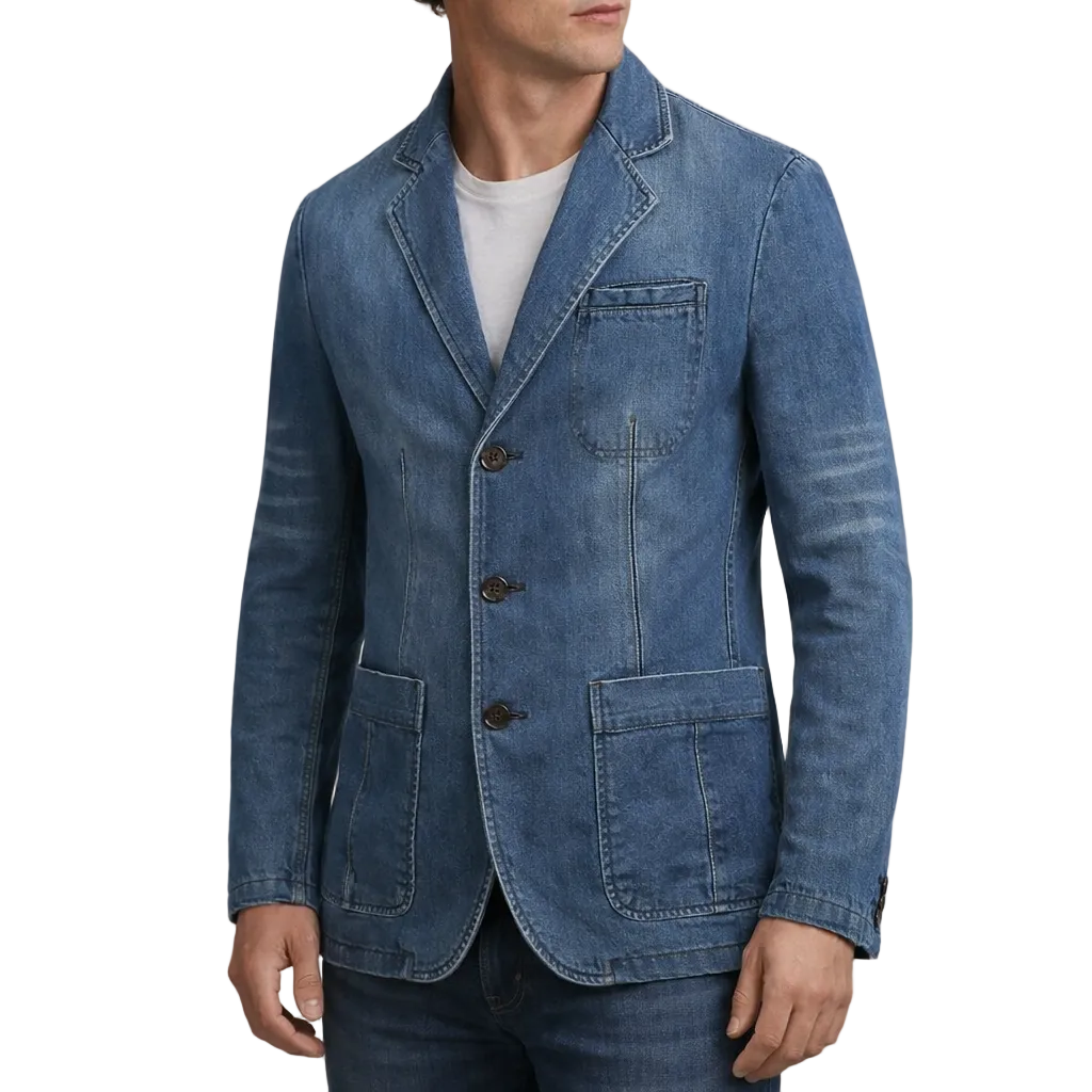 Contemporary, versatile and effortlessly refined, this Men’s Denim Blazer Jacket redefines smart-casual dressing. The structured tailoring meets relaxed denim texture, creating a balanced piece that transitions seamlessly from casual days to elevated evenings.