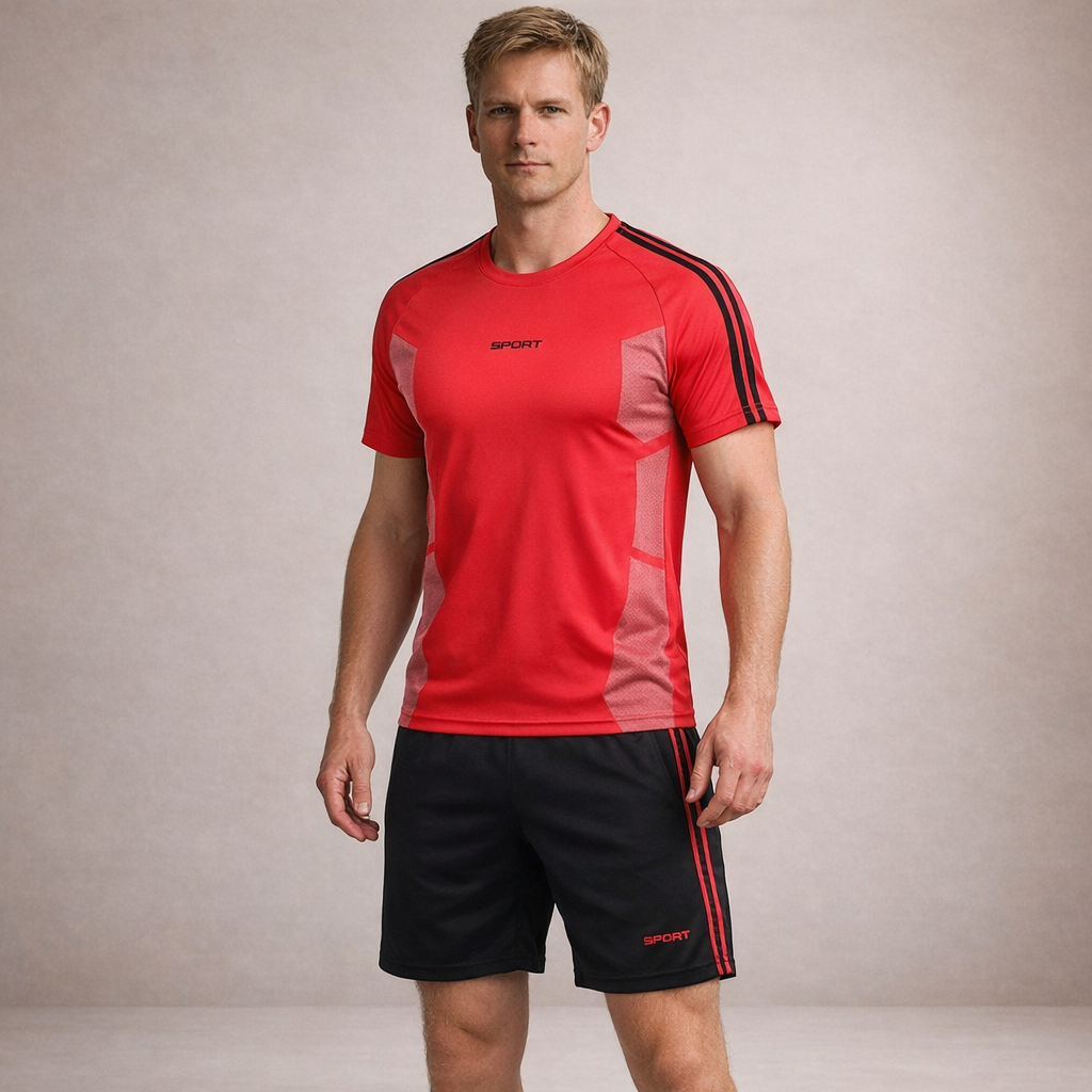 Lightweight, breathable and built for movement, this Men’s Performance Sports T-Shirt and Shorts Set is designed to support active training sessions. With its streamlined silhouette and athletic detailing, it delivers both comfort and a modern sport-focused look.