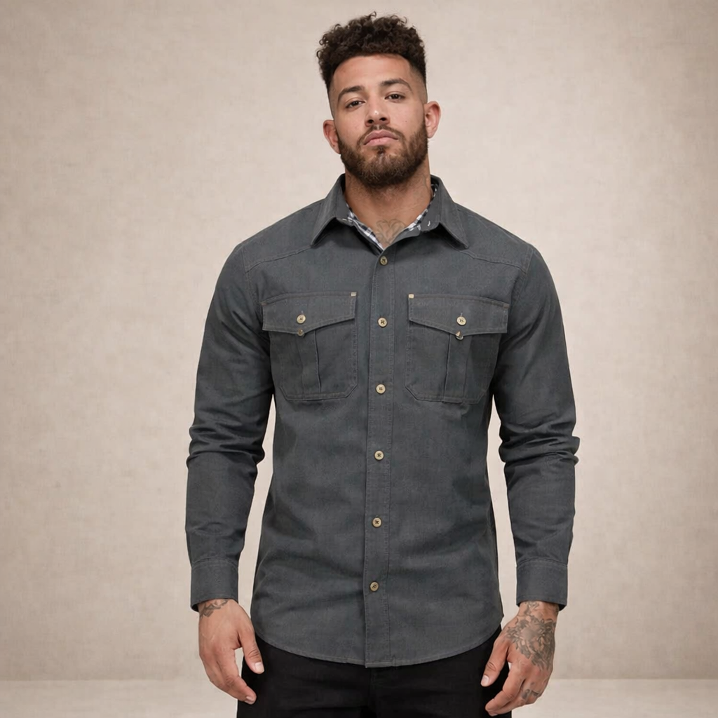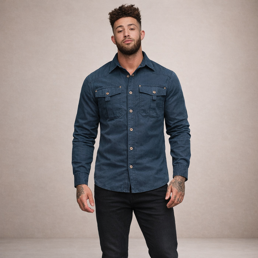 Rugged yet refined, this Men’s Utility Button-Down Shirt delivers a confident, structured look with everyday versatility. The clean lines and functional chest pockets give it a practical edge, making it a dependable choice for both casual and smart-casual styling.