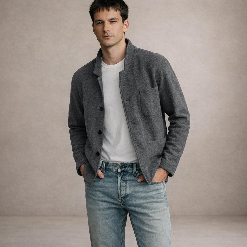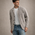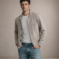 Effortlessly refined with a relaxed edge, this men’s button front knit blazer in light grey is a versatile layer for smart casual dressing. Its soft structure and clean lines make it ideal for transitional weather, pairing seamlessly with denim or tailored trousers. Subtle detailing keeps the look polished without feeling formal.