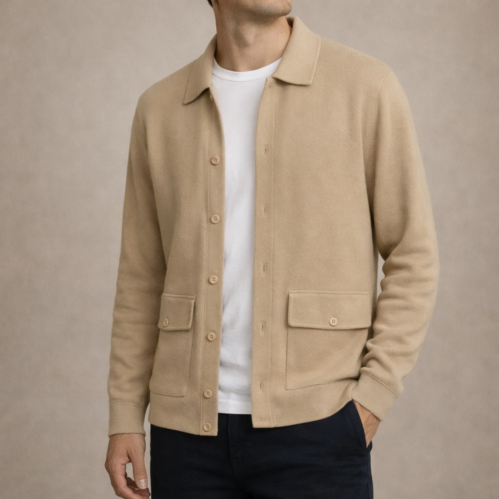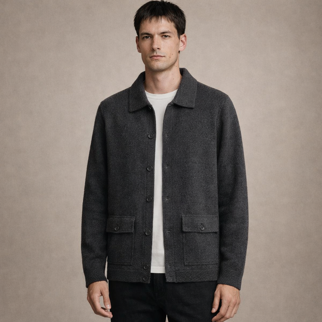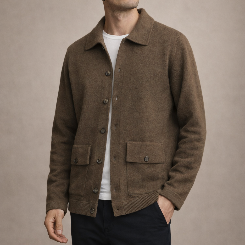 Men’s Button-Front Knit Jacket with Patch Pockets