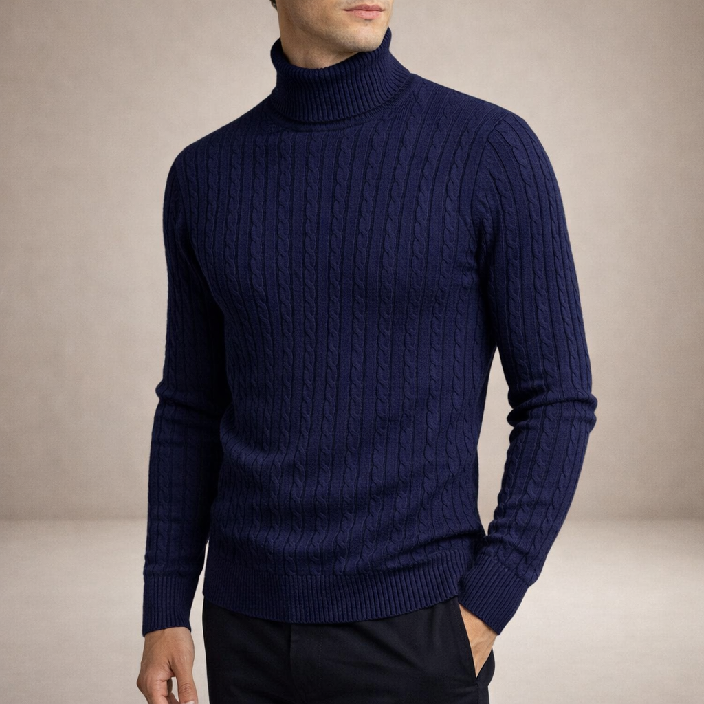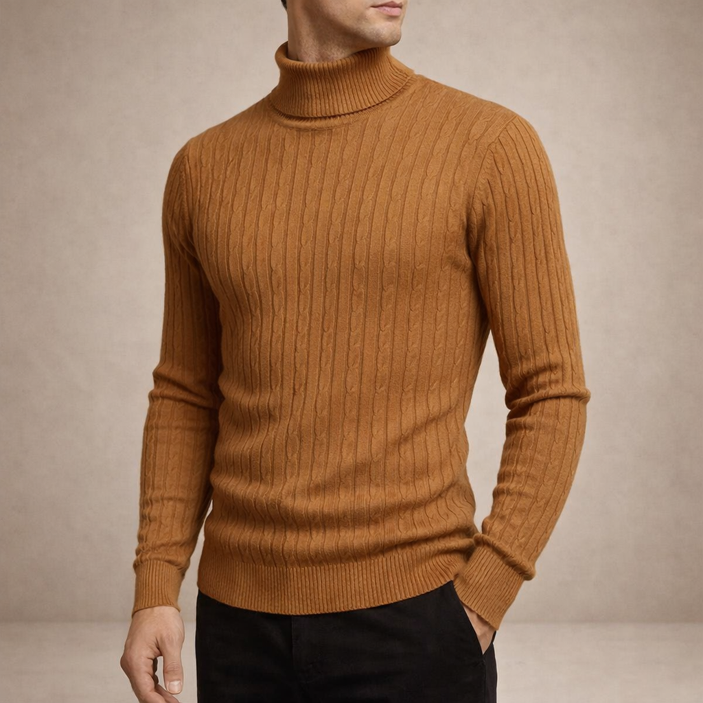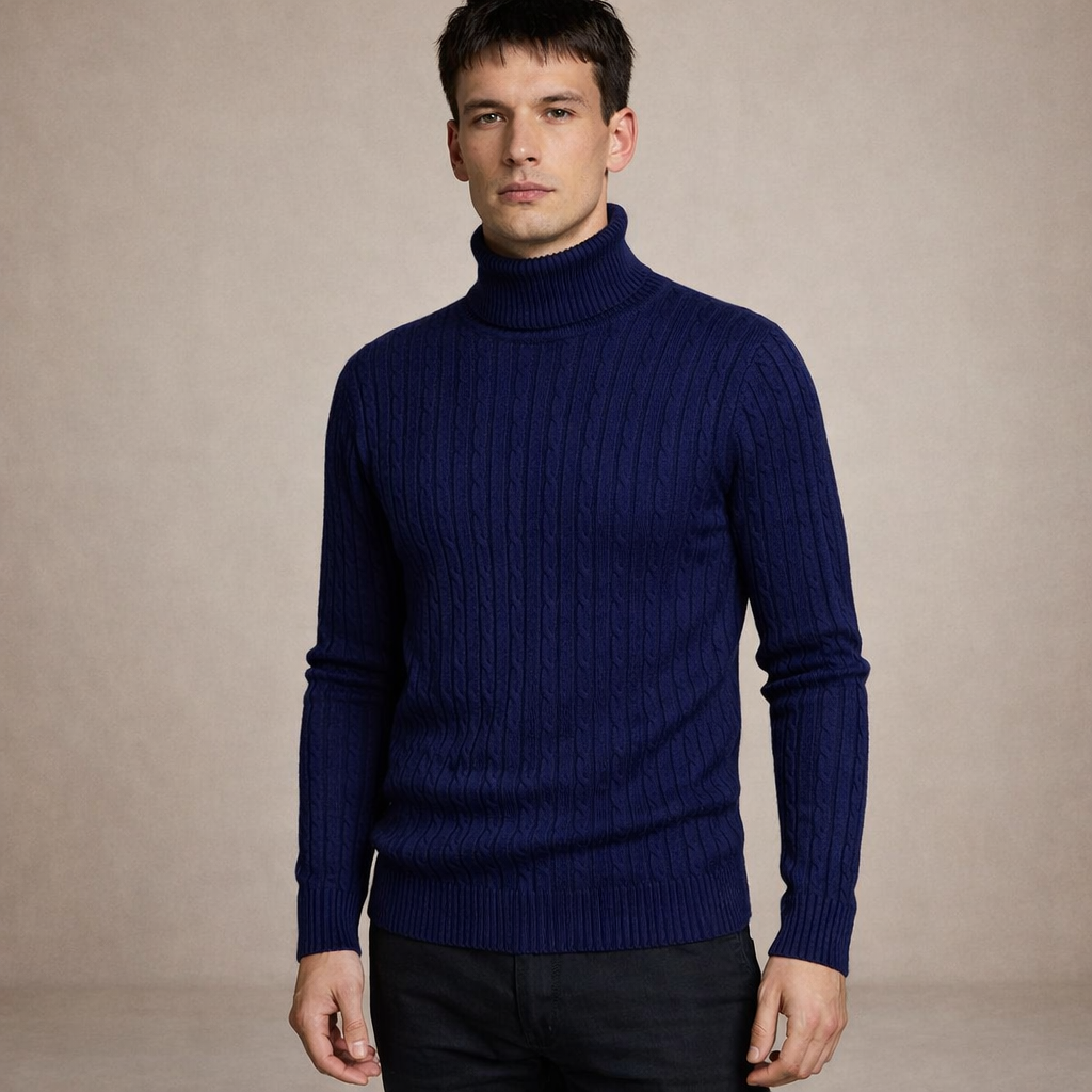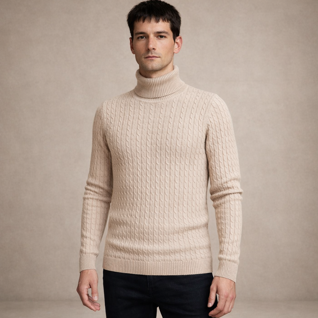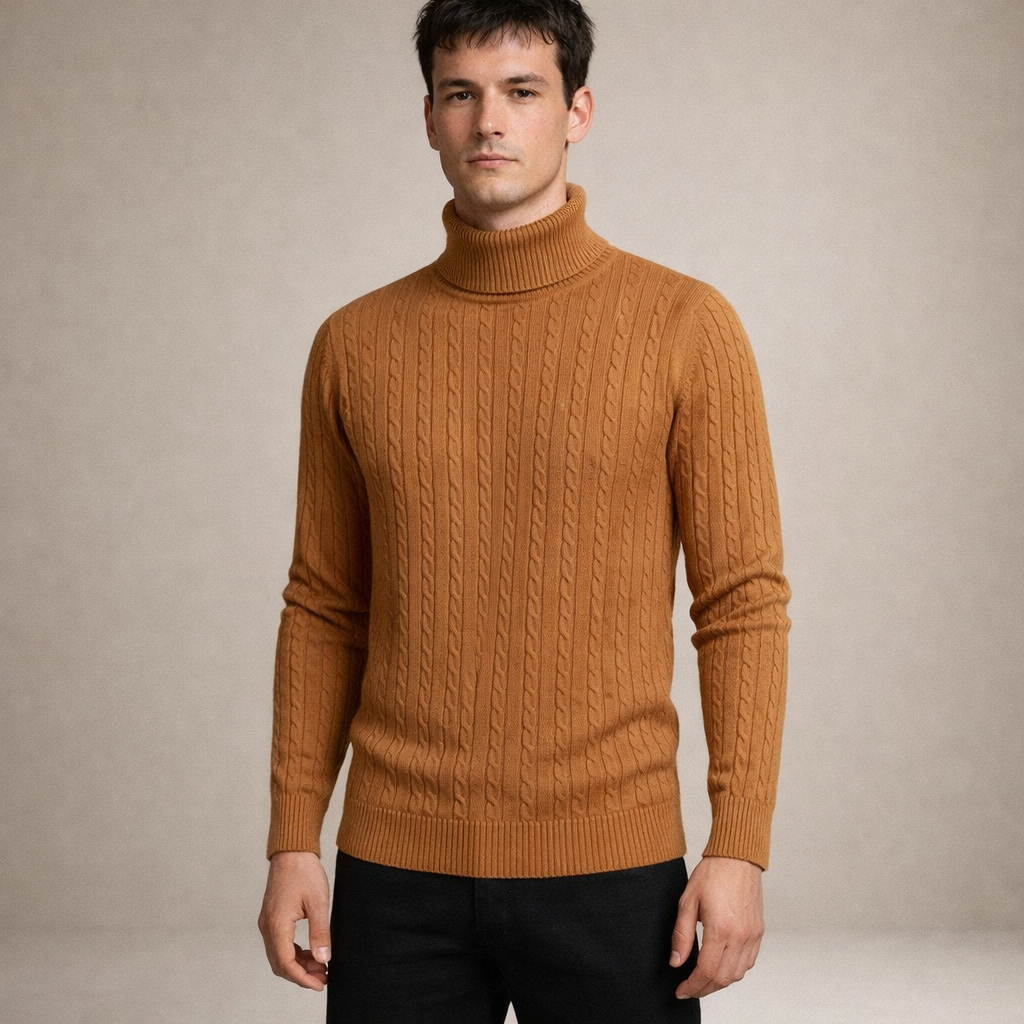 Key features of this Men’s Cable Knit Turtleneck Sweater