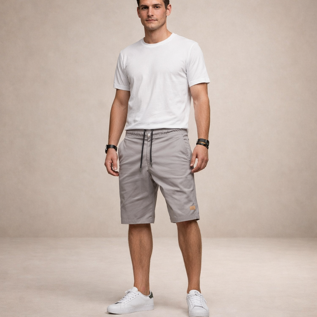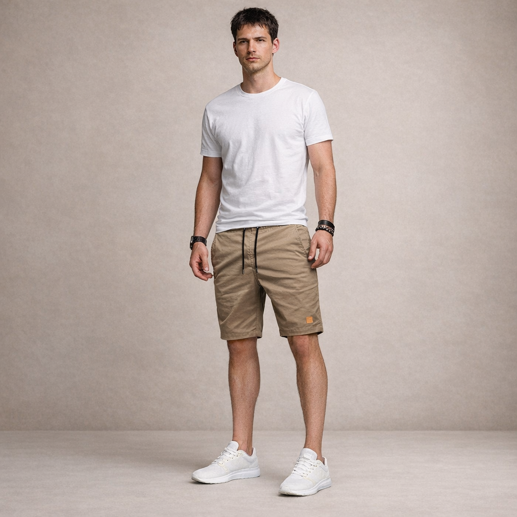 Clean, versatile and effortlessly comfortable, these Men’s Casual Drawstring Shorts are designed for relaxed everyday wear. The streamlined silhouette and minimal detailing create a modern look that transitions easily from leisure time to weekend outings. Easy to style with trainers and a simple tee, they offer understated practicality with a refined finish.