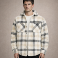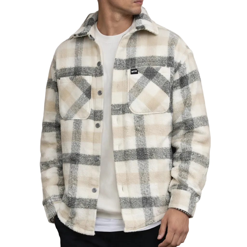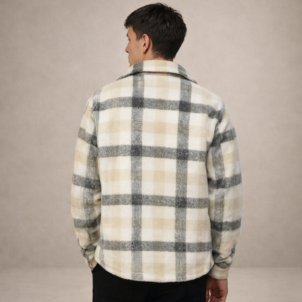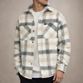 Men’s Checked Overshirt Jacket with Button Front Beige and Grey