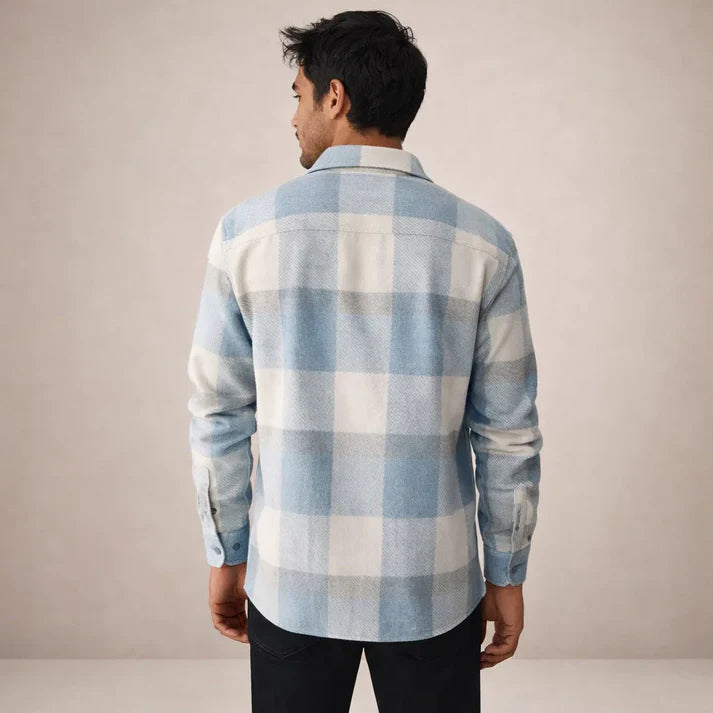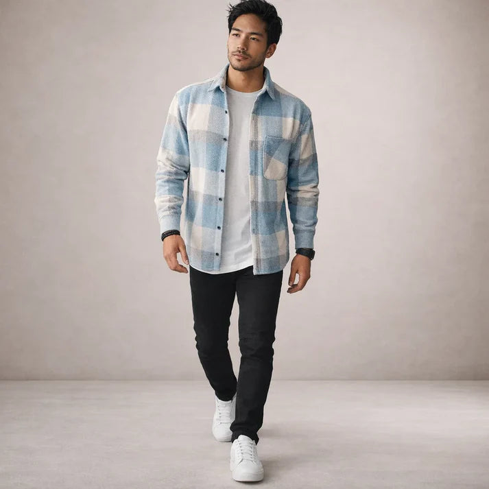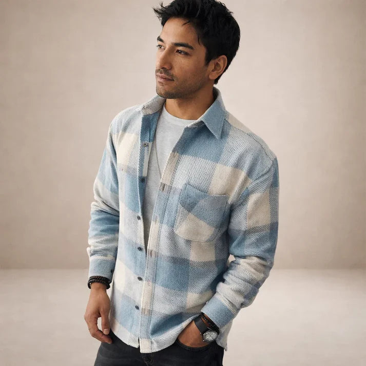 Men’s Checked Overshirt with Button Front and Chest Pocket